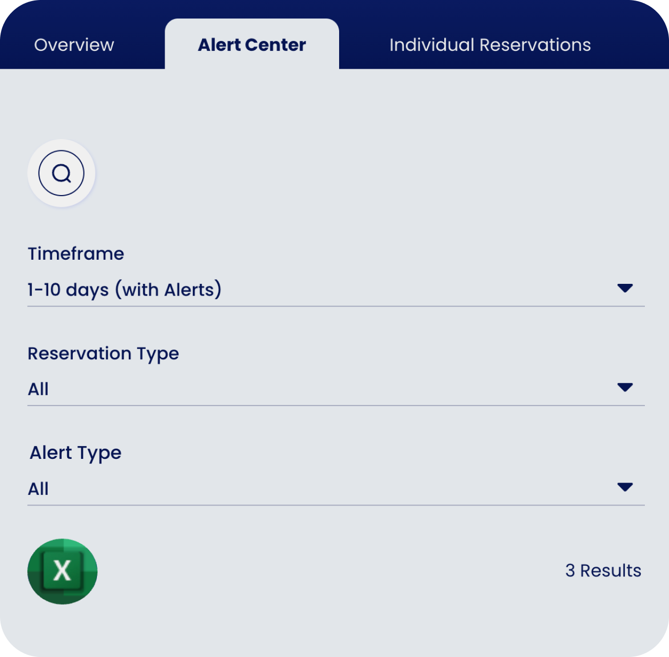 You don’t need to be in Alert Center to take care of business. Within each tab’s data set, we’ll flag reservations that need further attention. Just look for the alert icon in the left rail. Clicking on it will take you to Alert Center for details on resolving the alert.